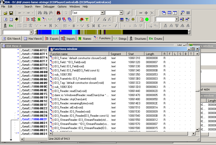I'm sure you've been waiting for updates that prove what we're talking about. Here it comes. I want to talk about the file ECDPlayerControl.ocx which the fanstastic muzzy found yesterday while I had nothing better to do than to listen to my pillow. It uses LAME code (and code from at least one other LGPL library). At virtual offset 0x100607D0 you can find a function that's called GetVbrTag in the LAME source code (it can be found in the file VbrTag.c). Here's some code straight from the LAME source code (it's only the first part of the function, I don't want this post to get too long): int GetVbrTag(VBRTAGDATA *pTagData, unsigned char buf)